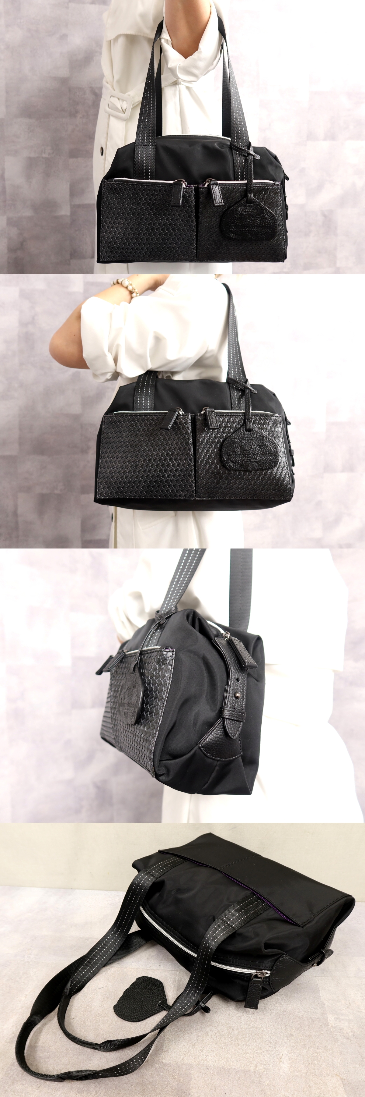 Store ●超美品●OSAM オサムバッグ●ステッチ●チャーム●ナイロン レザー 本革●ショルダー ハンド バッグ●黒●肩掛け●収納 かばん●Js67335
