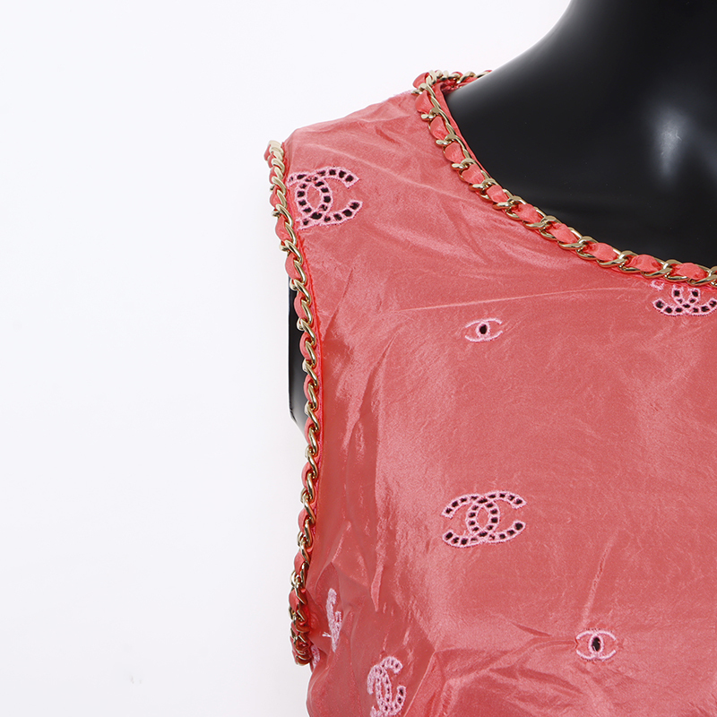 Product name: シャネル CHANEL タンクトップ Size:34 P60802 ココマーク シルク チェーン ノースリーブ ピンク