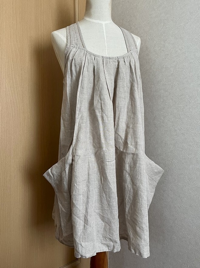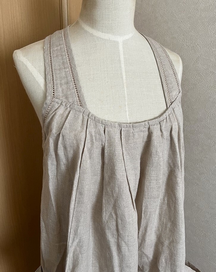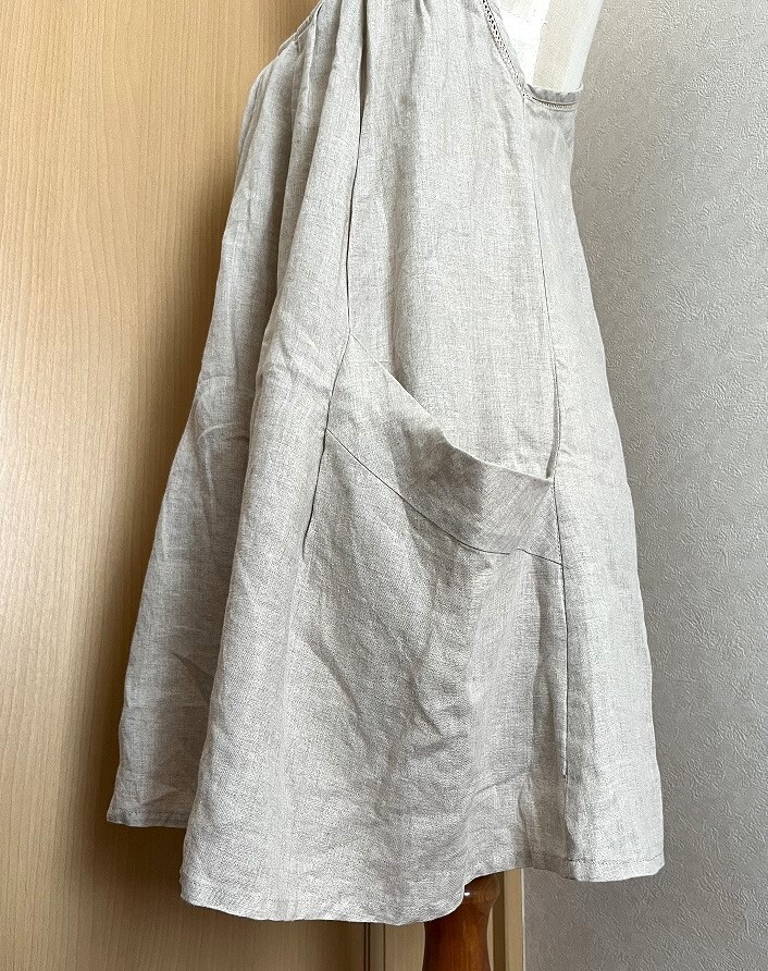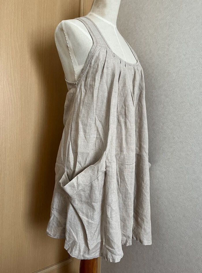 ☆【LUCA/LADY LUCK LUCA】サロペット チュニック ワンピース レース編み ポケット 麻100% ベージュ☆