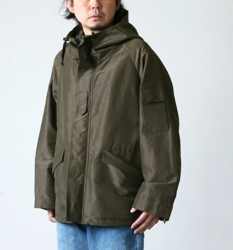 ドロップショルダーにたっぷりの身幅のゆったりとしたmarkaらしいオーバーサイズシルエットで、裾部分にはドローコード、袖口にはボタン式のアジャスターが付いているので、お好みでシルエットの微調節も可能。