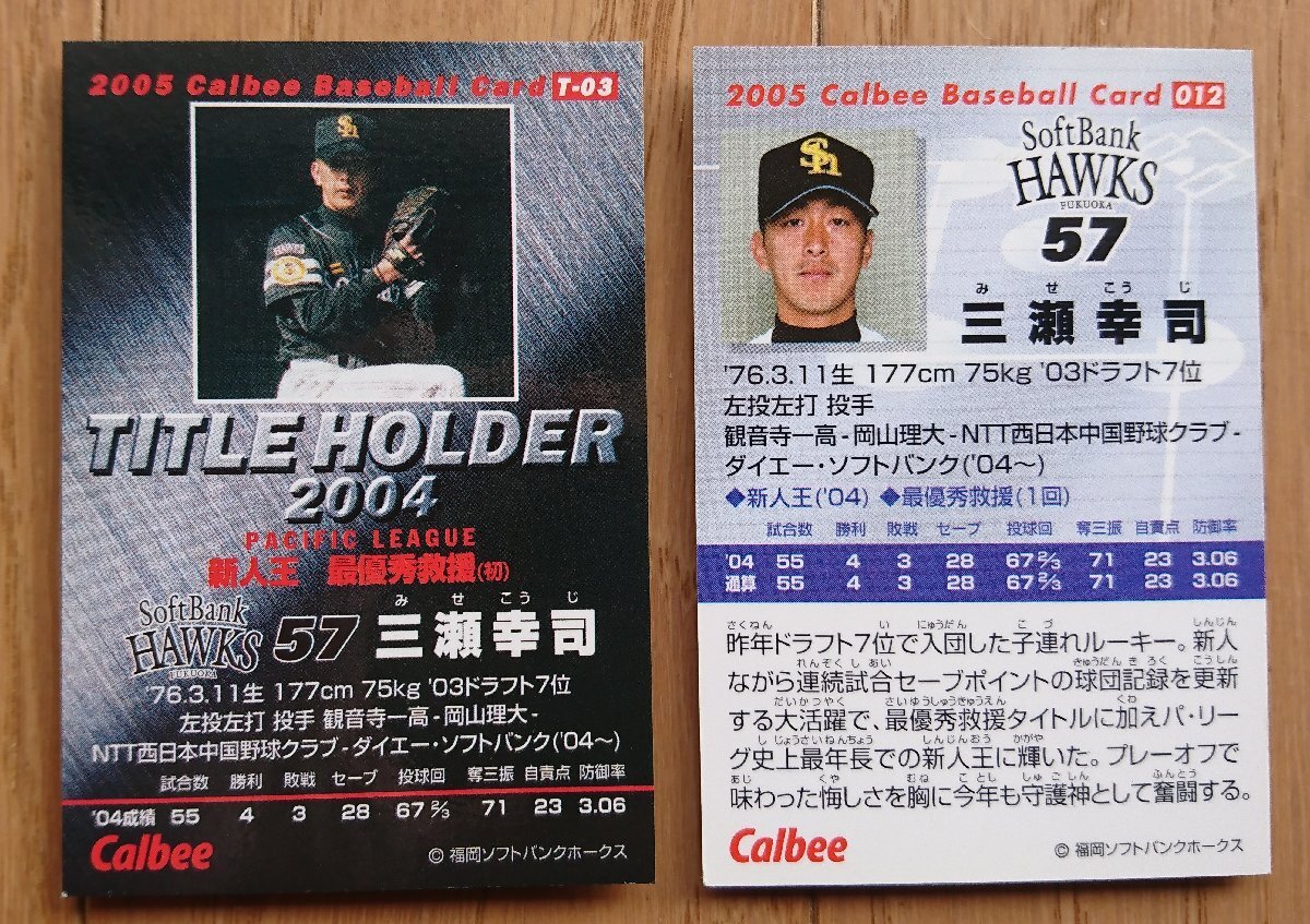 【カード・カルビー2005年】三瀬幸司 T-03 タイトルホルダー / 012 計2枚セット 福岡ソフトバンクホークス カルビープロ野球チップス