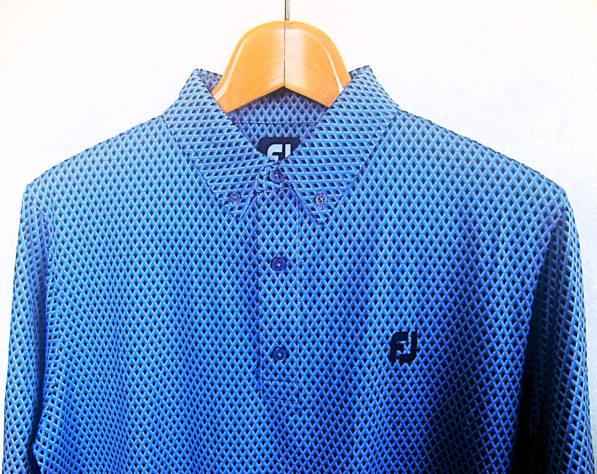ハイグレードゴルフウエア FJフットジョイ、刺繍ロゴ入り長袖ボタンダウン ダイヤモンドプリント ライルシャツです。