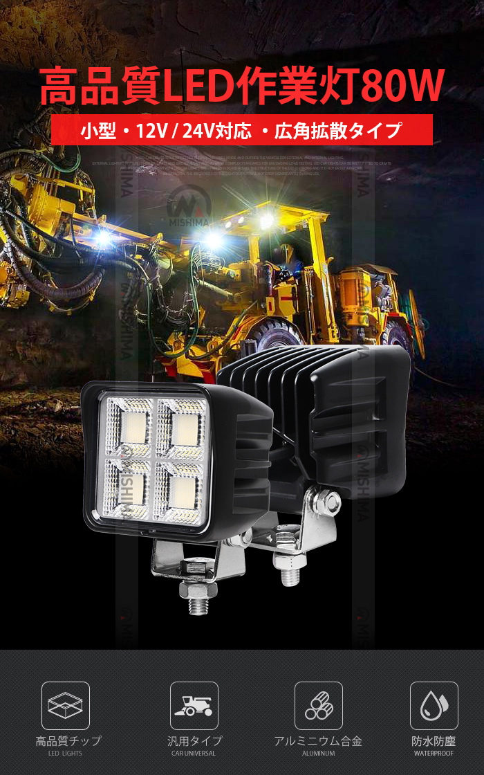 Product name: msm8880【2台】小型 軽量 LEDワークライト 作業灯 1年保証 80W 農業 漁業 建設 警備 工事 軽トラ トラック 12V 24V 広角 拡散 荷台灯 防水