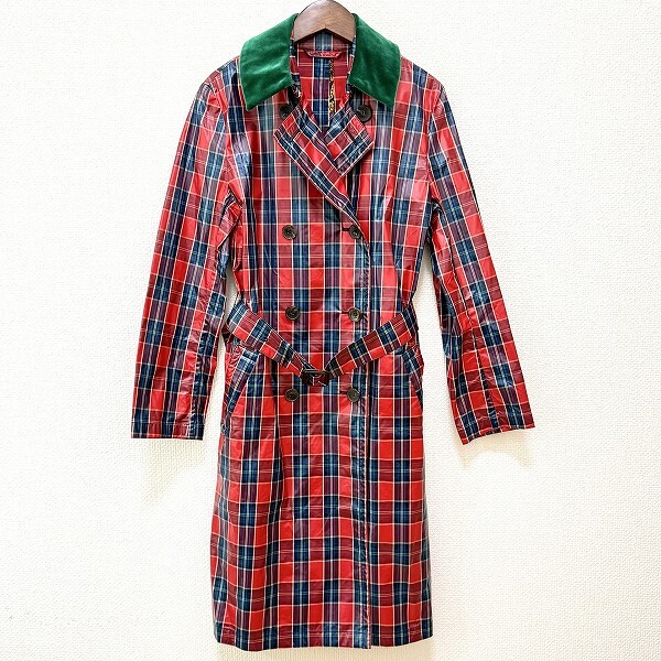 Product name: #asc エトロ ETRO コート 38 赤 青 緑 ナイロン チェック ベルト付き イタリア製 レディース [897795]