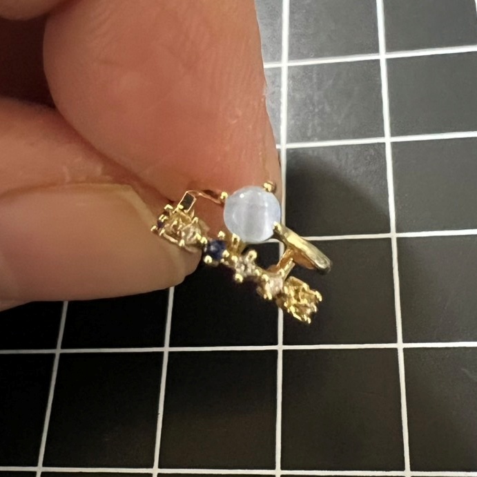 アイスブルーのキャッツアイが可愛らしいC型リングピアスです。