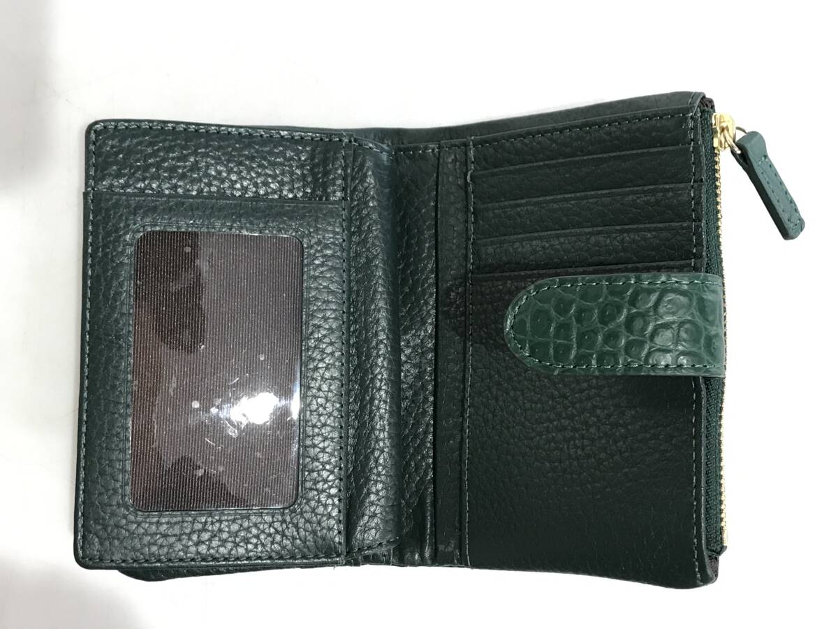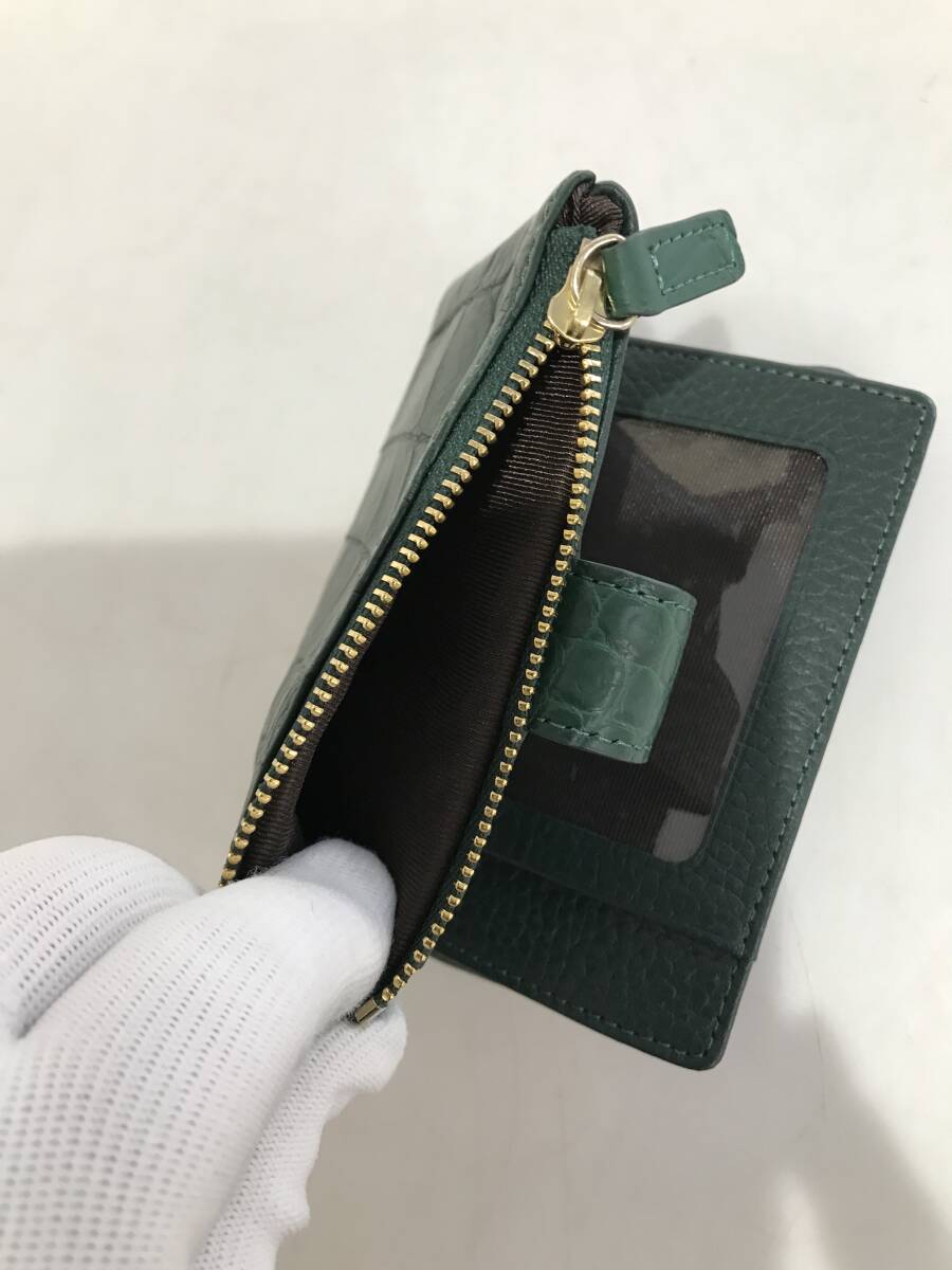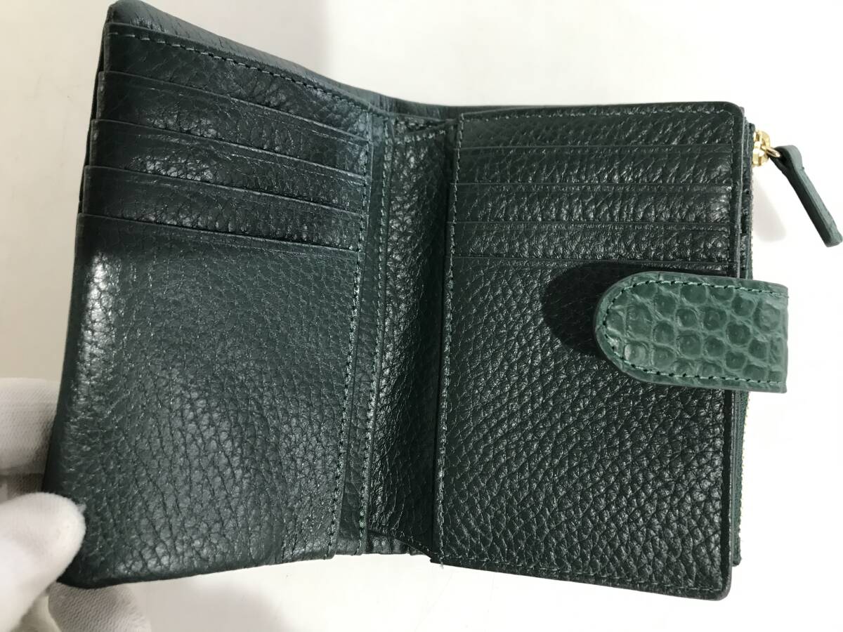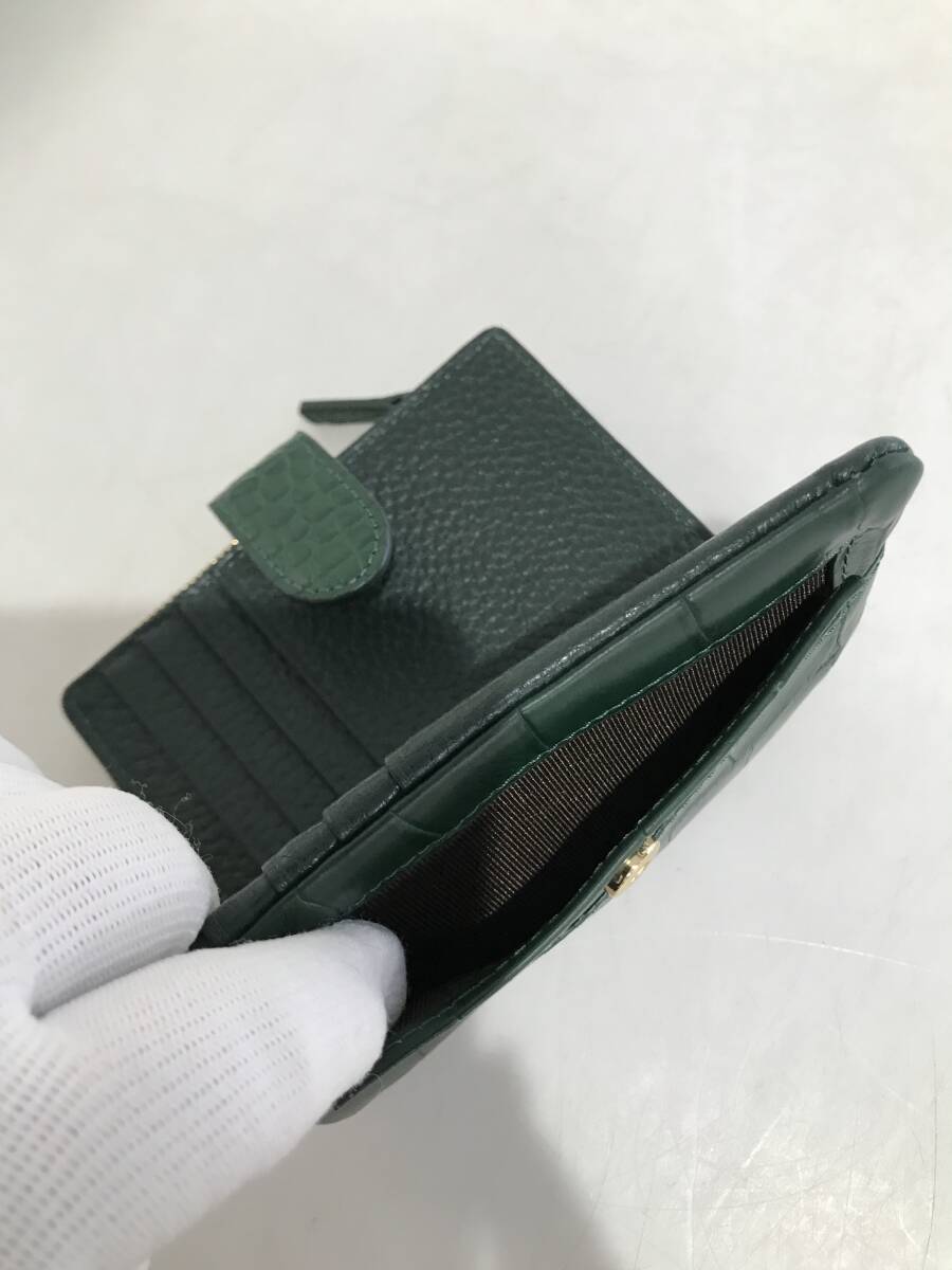 Product name: HG7428 クロコダイル 折り財布 財布 ウォレット グリーン 小銭入あり ファスナー カード入 ワニ革 レザー 箱付き 未使用品