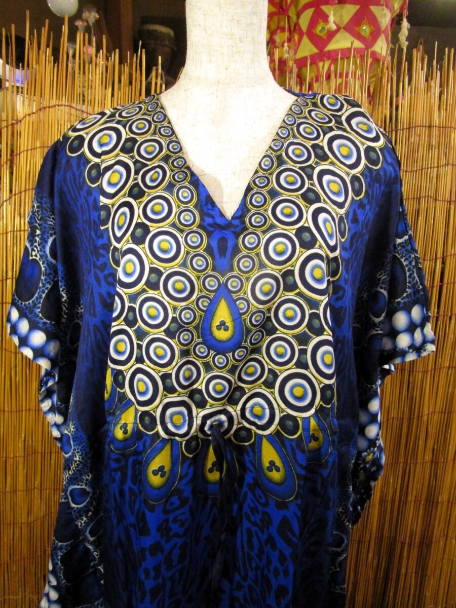 Product name: 【送料込み/半額SALE】①訳あり 薄手ビスコース素材 ゆったりサイズ 妖艶プリント ガラベーヤ ポンチョ風 マキシ丈 ワンピース MAJAM
