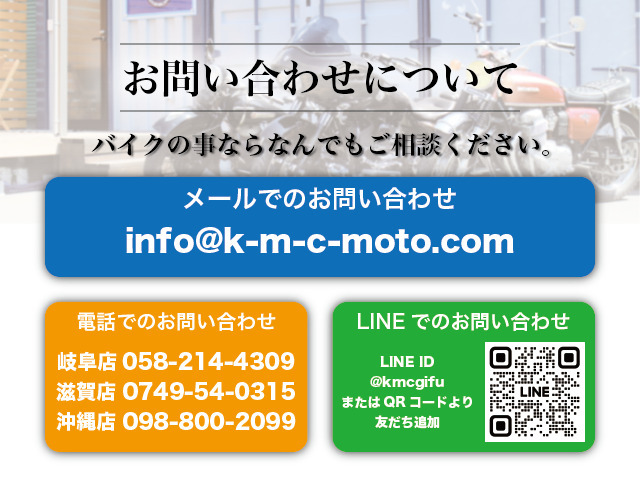 090-8540-5884   kmcmoto5884@yahoo.co.jp    LINEID:@kmcgifu