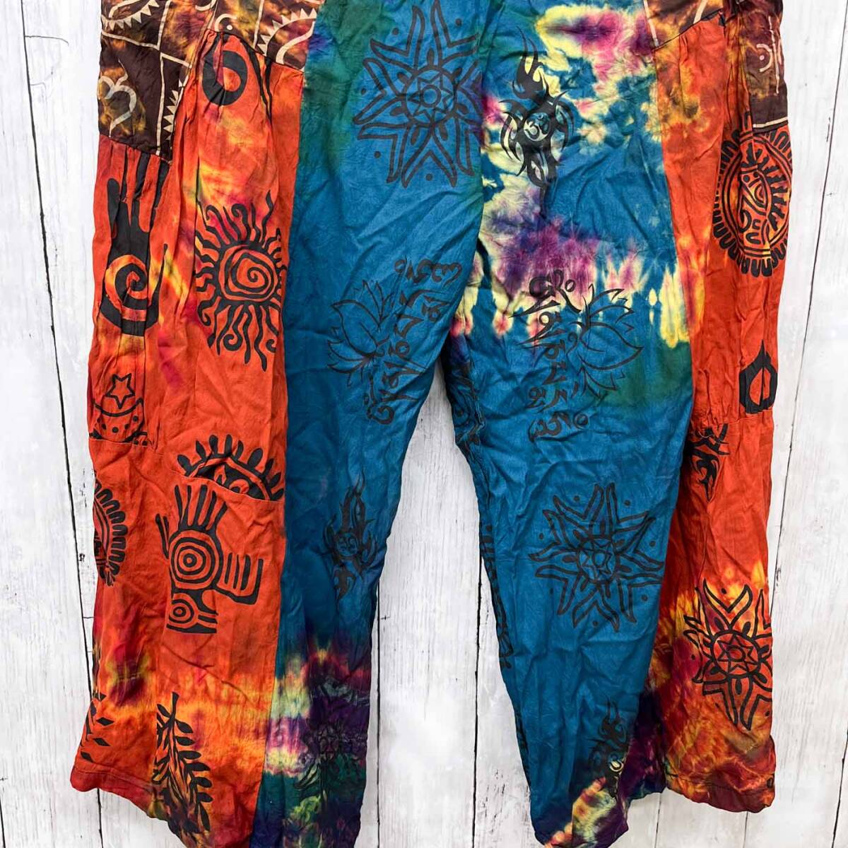 ワイドパンツ ガウチョパンツ タイダイ パッチワーク エスニック メンズ レディース フリーサイズ タイ製品 D-349