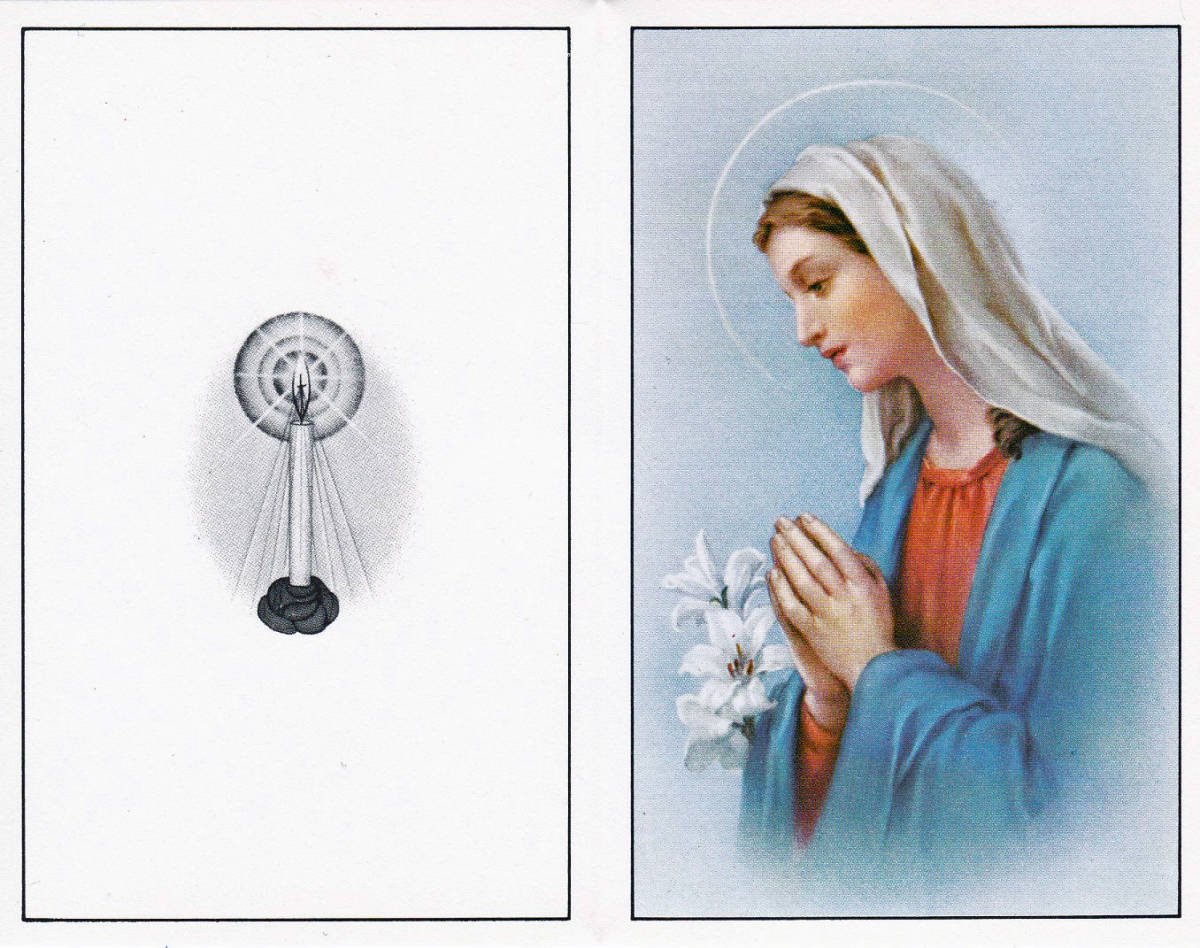 カトリック教会で葬儀,結婚式,お祝い等に使われるカードです。裏は白紙で、聖書の御言葉と該当者の経歴等を印刷して、参列者に配布します。一枚ずつ以外に、ご希望の物を組み合わせて7枚でも可能です。落札後、すぐに取引ナビにてお知らせください。