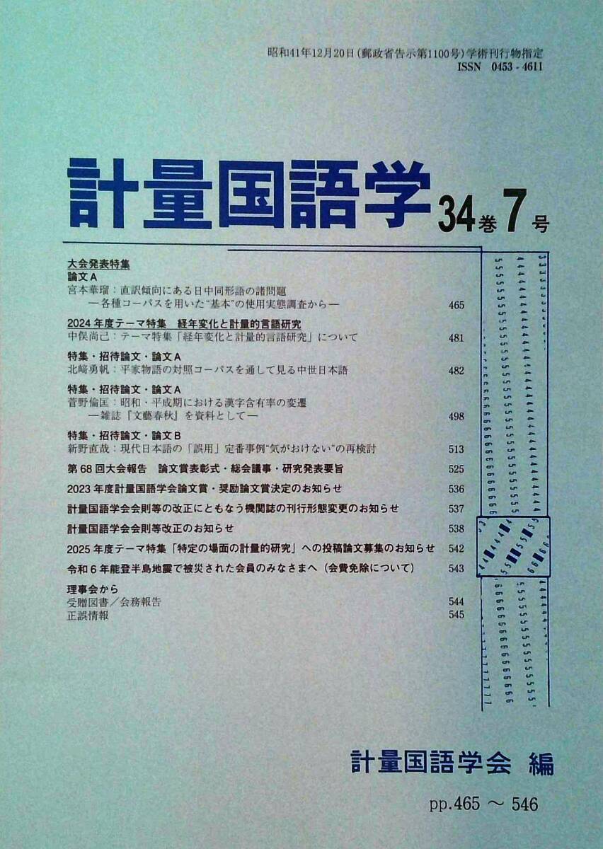 Product name: 『計量国語学』 34巻7号 2024 pp.465~546 Mathematical Linguistics Vol.34 No.7 計量国語学会(編)