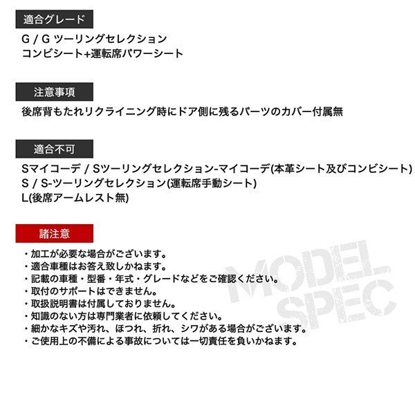 注意事項 後席背もたれリクライニング時にドア側に残るパーツのカバー付属無