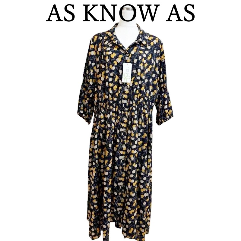 アズノウアズ オオラカ レディース ロングワンピース シャツワンピース 5分袖 果実プリント 黒 15号 大きいサイズ