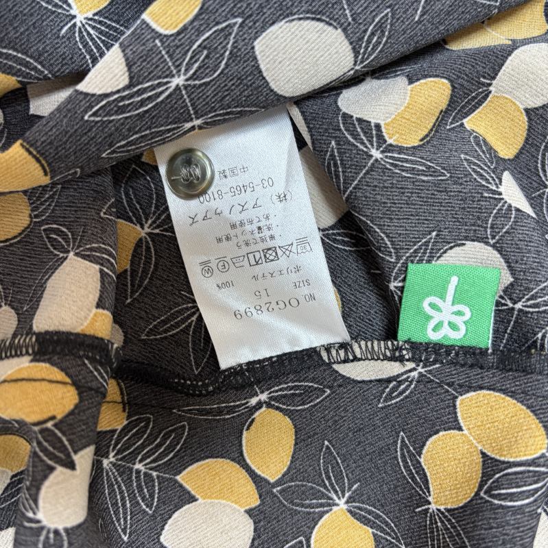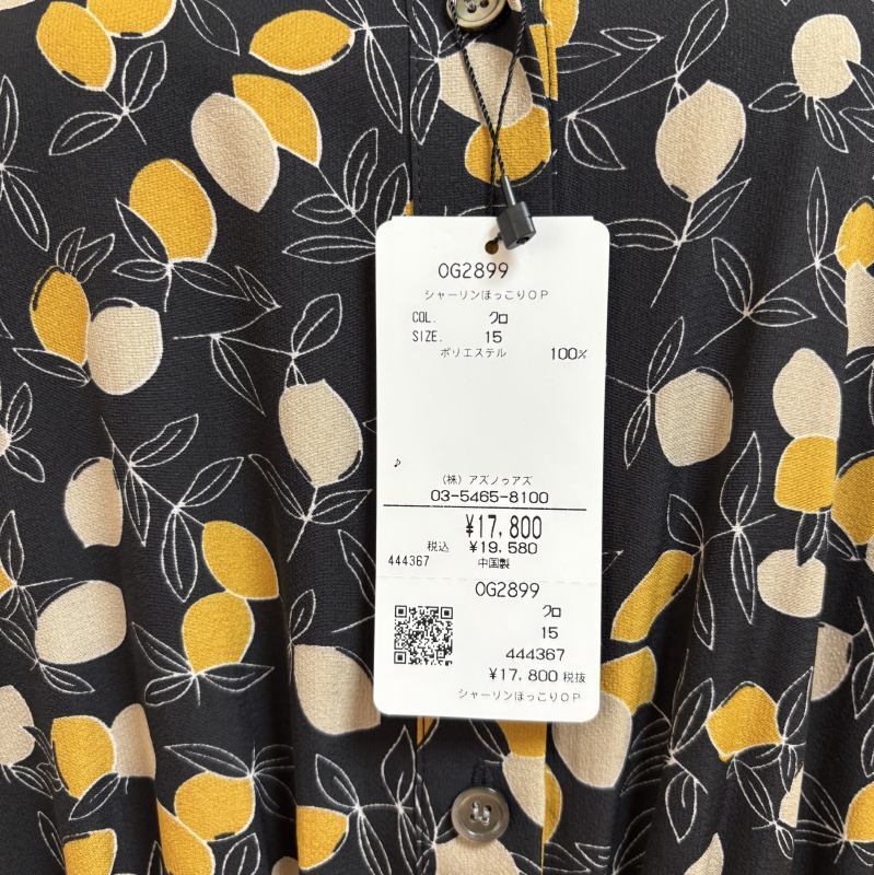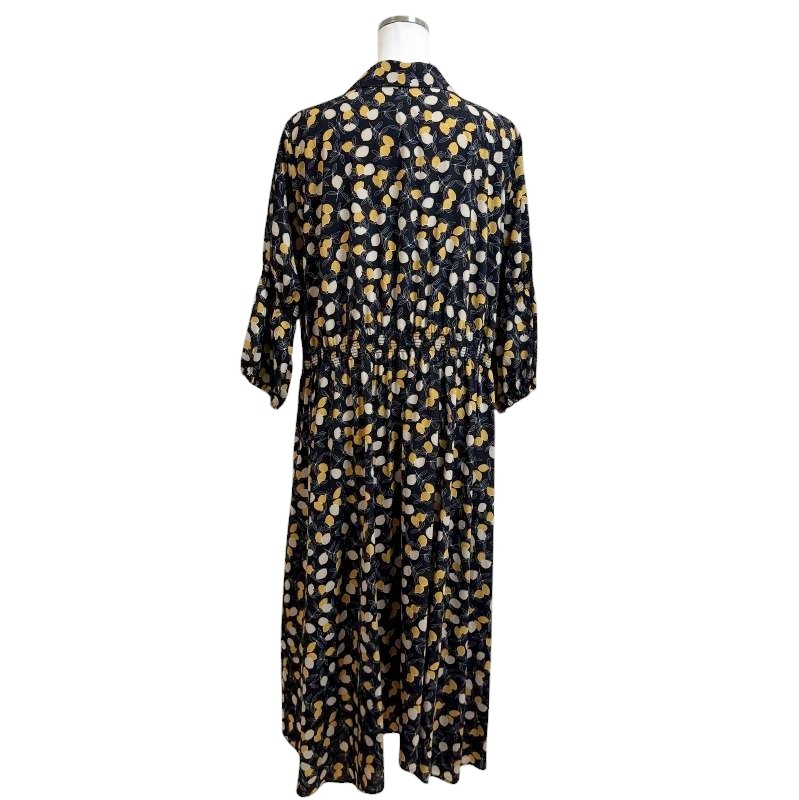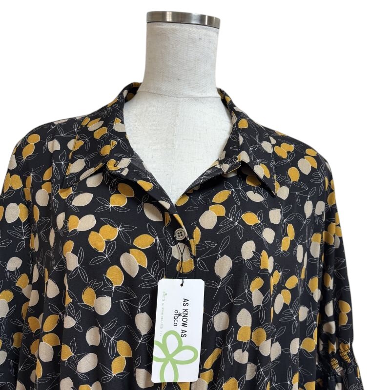 Product name: アズノウアズ オオラカ レディース ロングワンピース シャツワンピース 5分袖 果実プリント 黒 15号 大きいサイズ