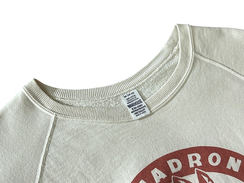 送無 雰囲気抜群 WAREHOUSE ウエアハウス 461 SQUADRON 2ND-HAND セカンドハンド セコハン 古着加工 クルーネック スウェット クリーム M