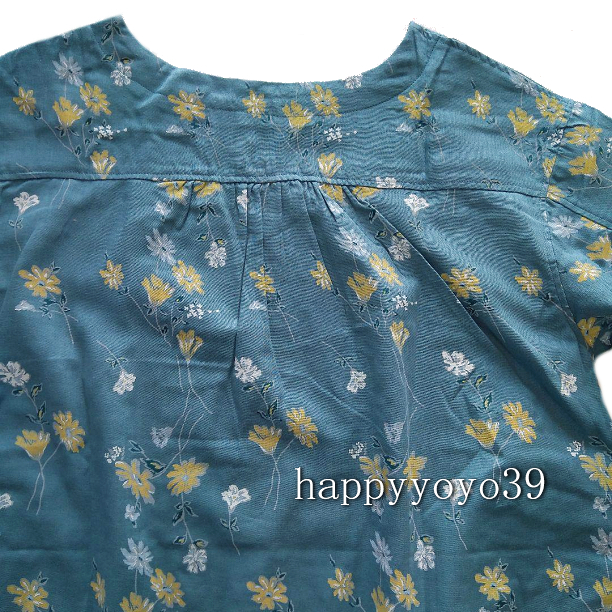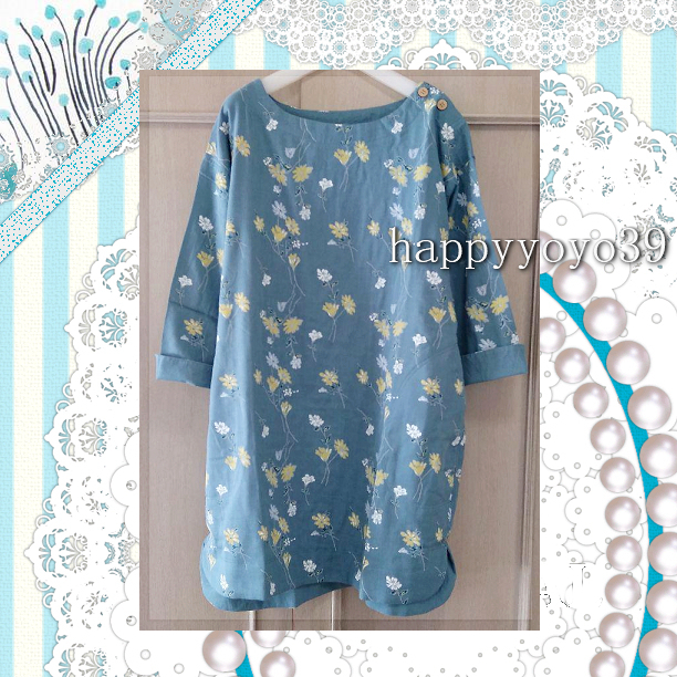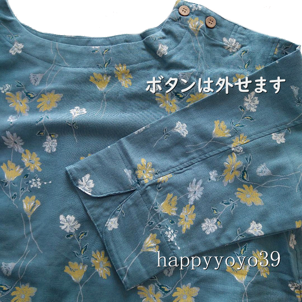 Product name: 激安 新品 L スモークブルー ダブルガーゼ草花柄 七分袖 チュニック 大きいサイズ スキッパー割烹着 チュニックワンピース ブラウス ミセス