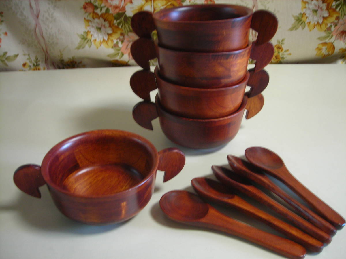 ★和食器 木製 両手付スープボウル スプーン付き 各5客セット の出品です。