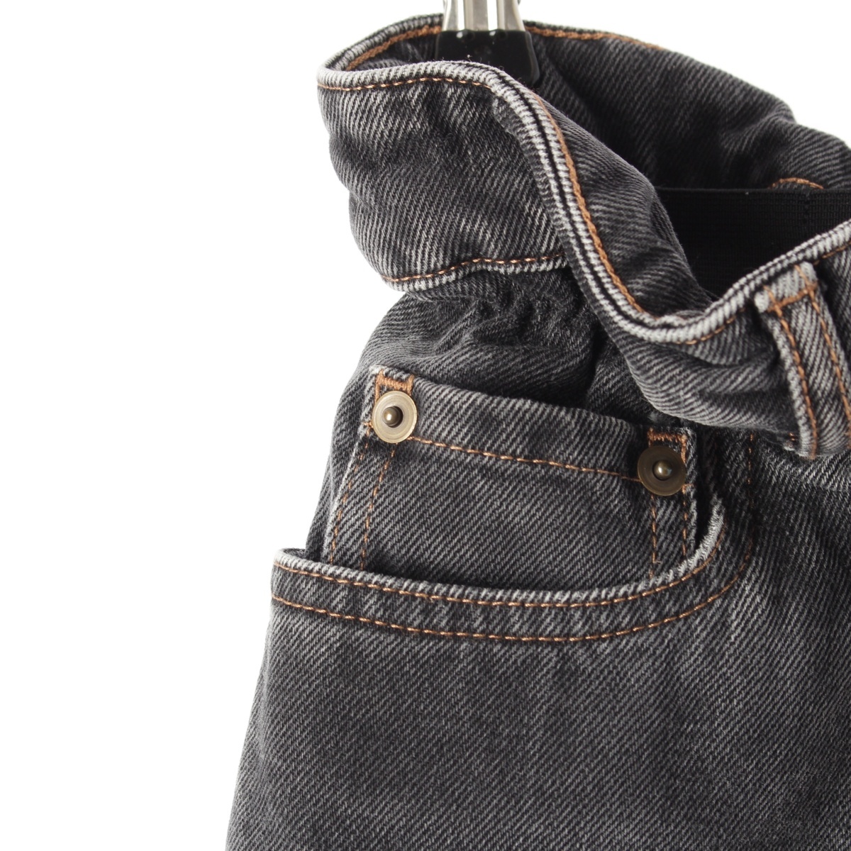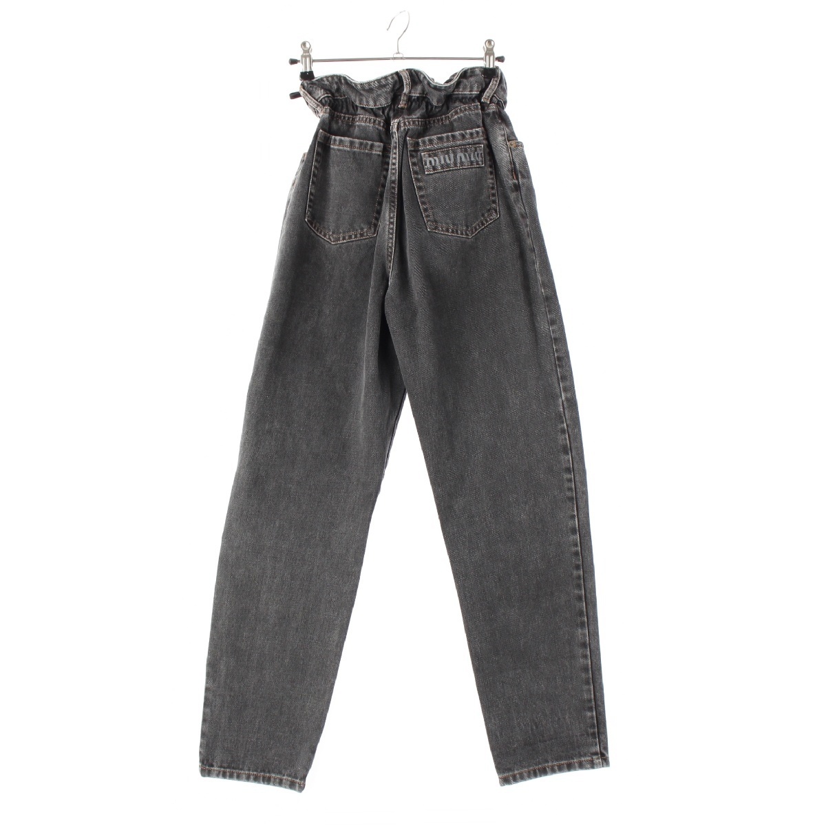Product name: ミュウミュウ 21年 コットン ウエストギャザー テーパード ジーンズ デニムパンツ GWP329 ブラック 24【中古】