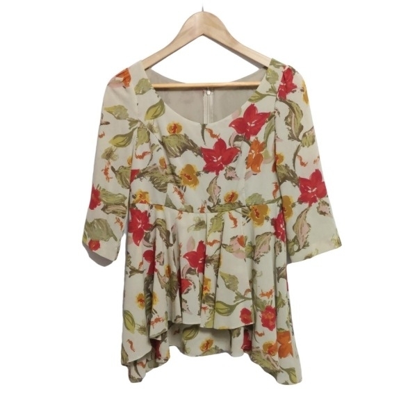 Product name: グレースコンチネンタル GRACE CONTINENTAL 七分袖カットソー サイズ36 S - ベージュ×レッド×マルチ レディース クルーネック/花柄 美品