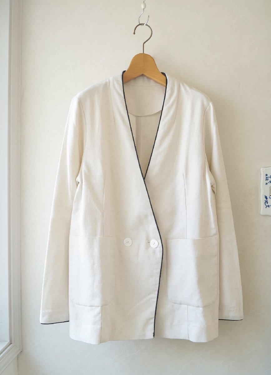 Product name: ★送料無料!! NTERPLANET|インタープラネット *春夏 リネン混 パイピングノーカラーライトジャケット* 古着のgplus広島 2505t3