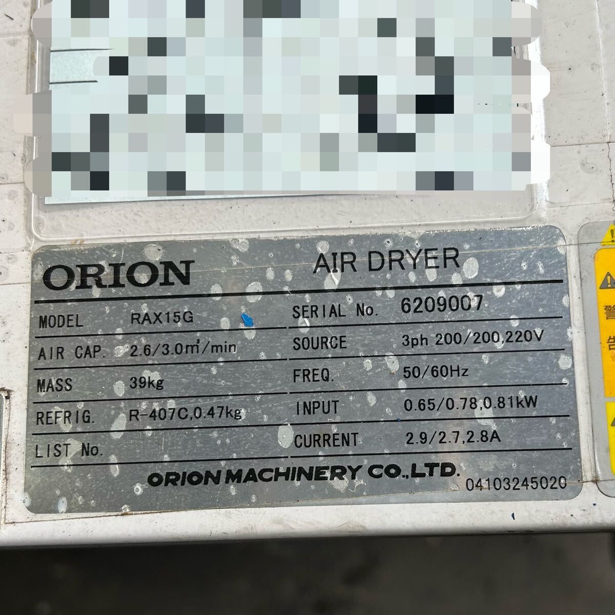 T1102 ORION オリオン エアードライヤー RAX15G 200/220V 50/60Hz 【通電のみ確認】