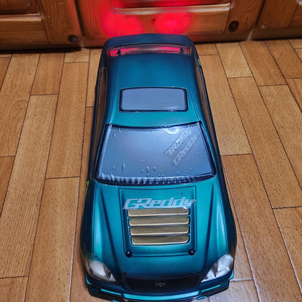 中古シャーシはタイヤを使いきってる事や滑らないリング式のドリフトタイヤを組み込んでる事が多いですが、こちらの商品は新品、滑るタイヤを組み込んでますのでたっぷり走行可能。新品タイヤですので、室内カーペットなどでも使えます