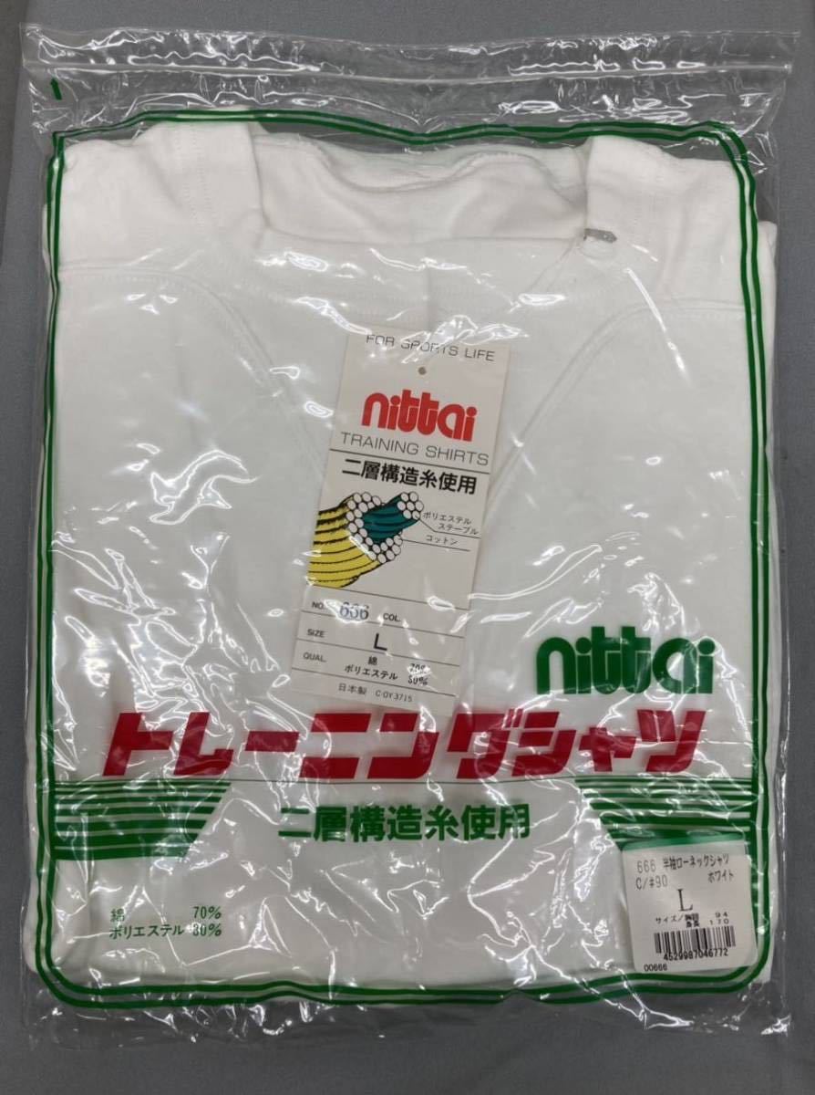 体3-12 L サイズ ホワイト ニッタイ nittai 希少品 666 トレーニング 半袖 ローネック シャツ 体操服 体操着 日体 昭和 レトロ 日本製 白