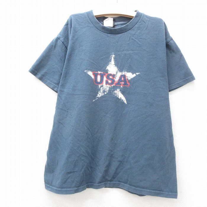 Product name: 古着 半袖 ビンテージ Tシャツ キッズ ボーイズ 子供服 90s USAロゴ 星 コットン クルーネック 紺系 ネイビー 25jun14