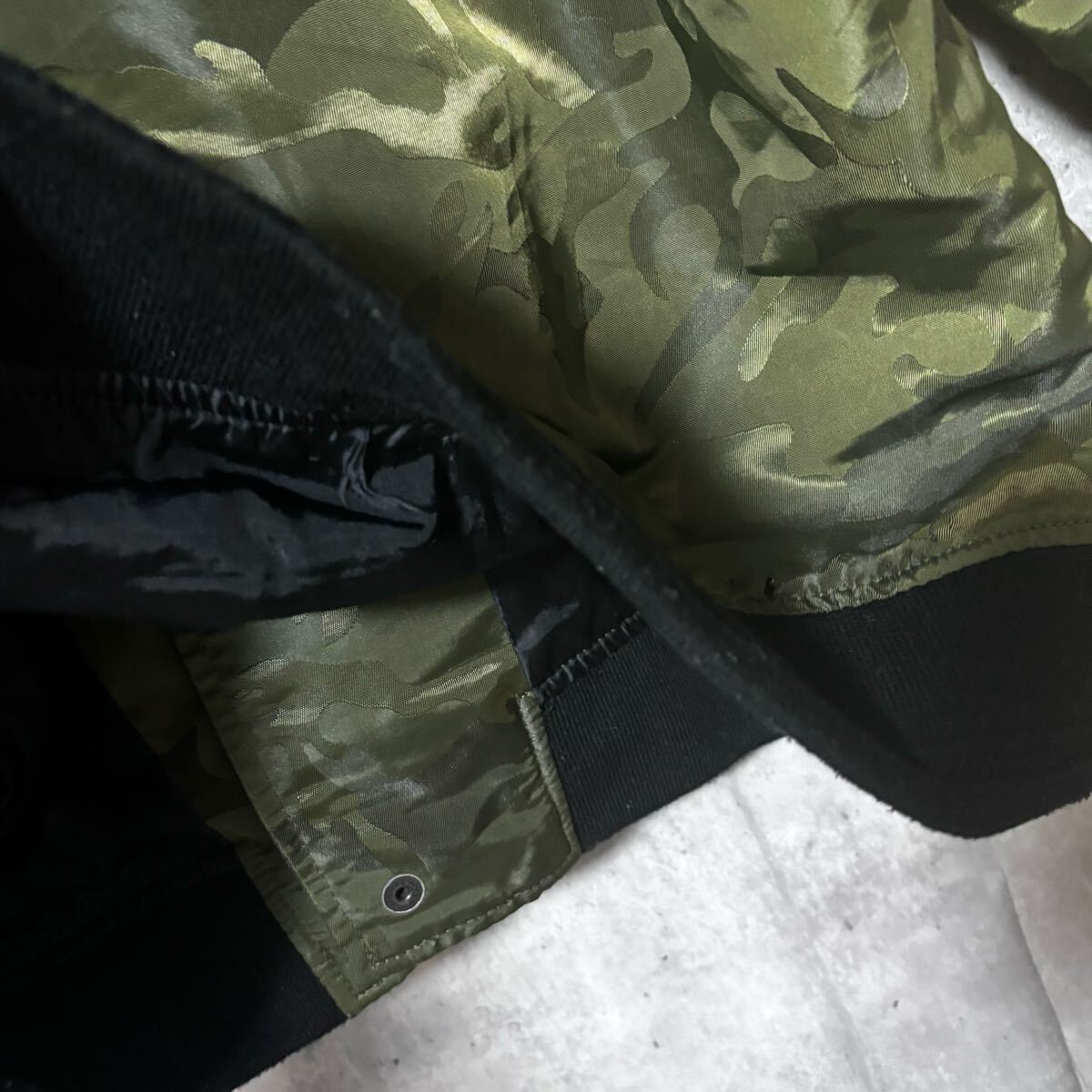 カモフラージュデザインのボタン付きジャケット、Lサイズ、スリーブリブ付きで快適な着心地。