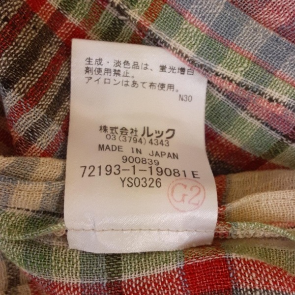 Product name: スキャパ Scapa サイズ38 L - リネン、リネン ベージュ×レッド×マルチ レディース クルーネック/ノースリーブ/マキシ丈/麻/チェック柄