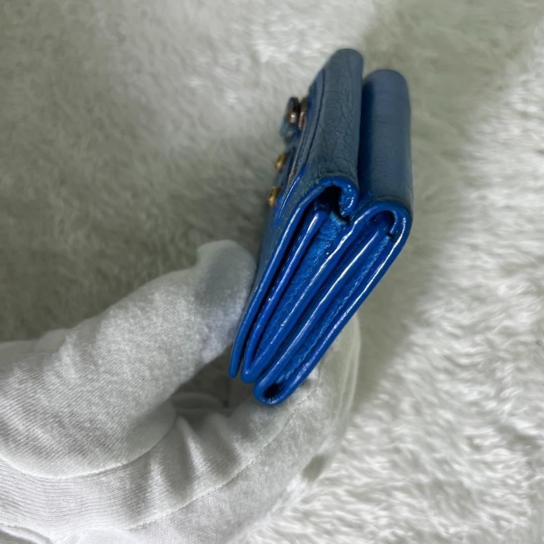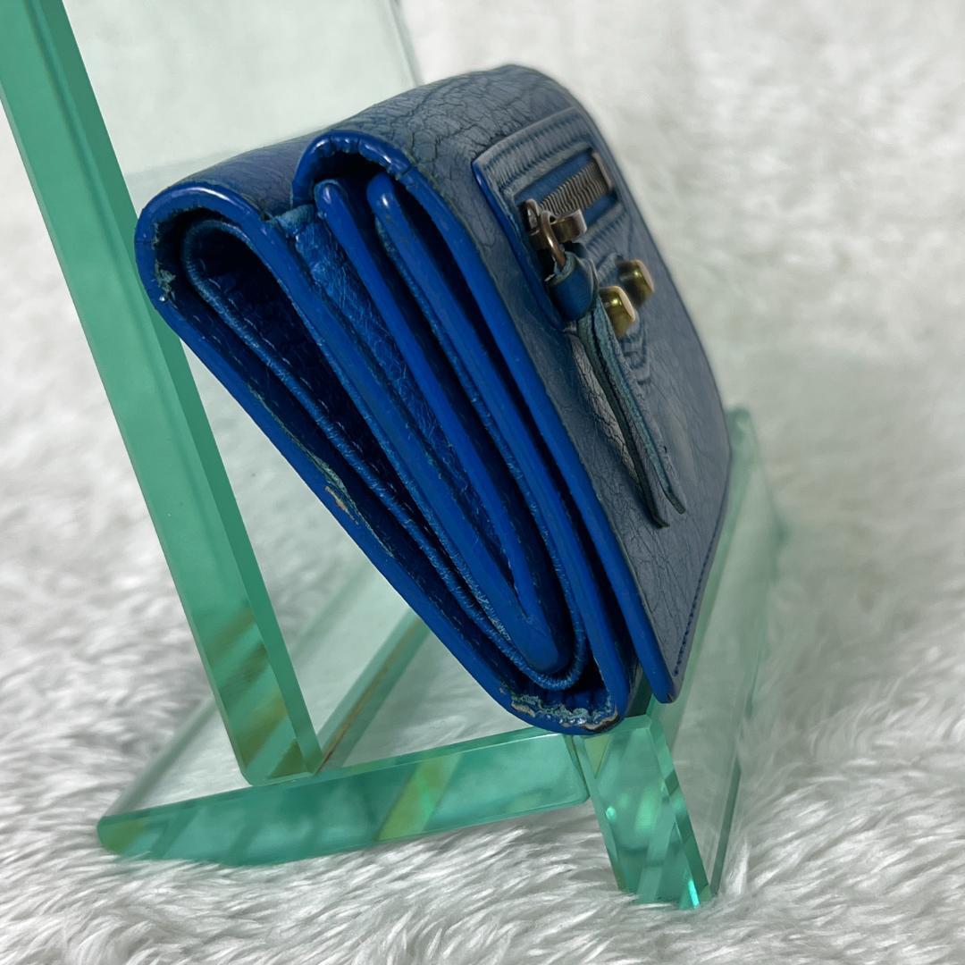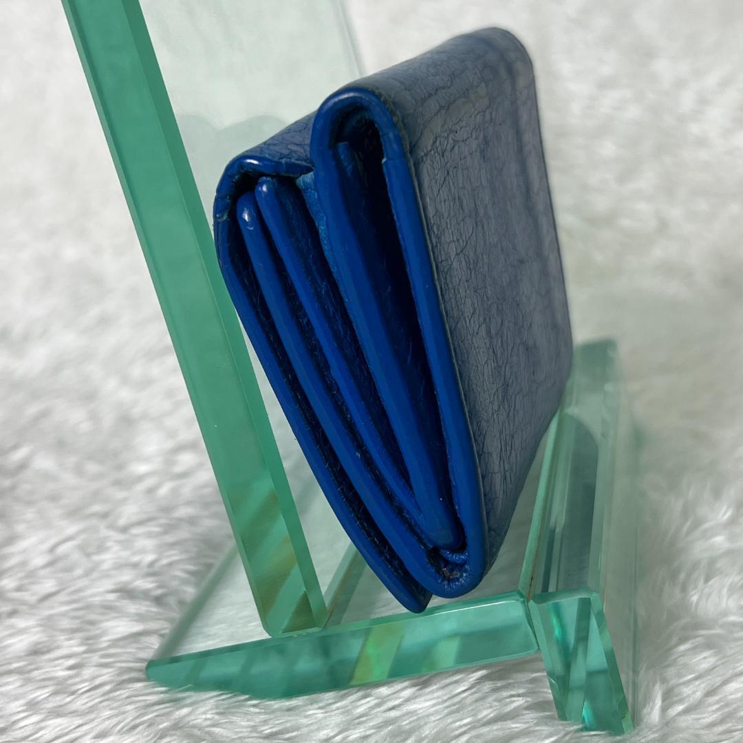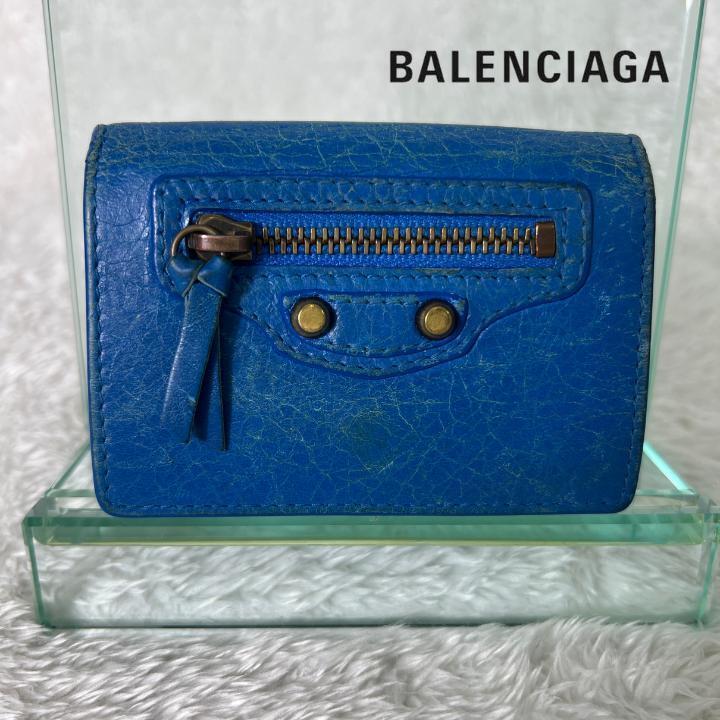《希少》バレンシアガ 3つ折り財布 レザー ブルー CLASSIC MINI ■KS2503-S103