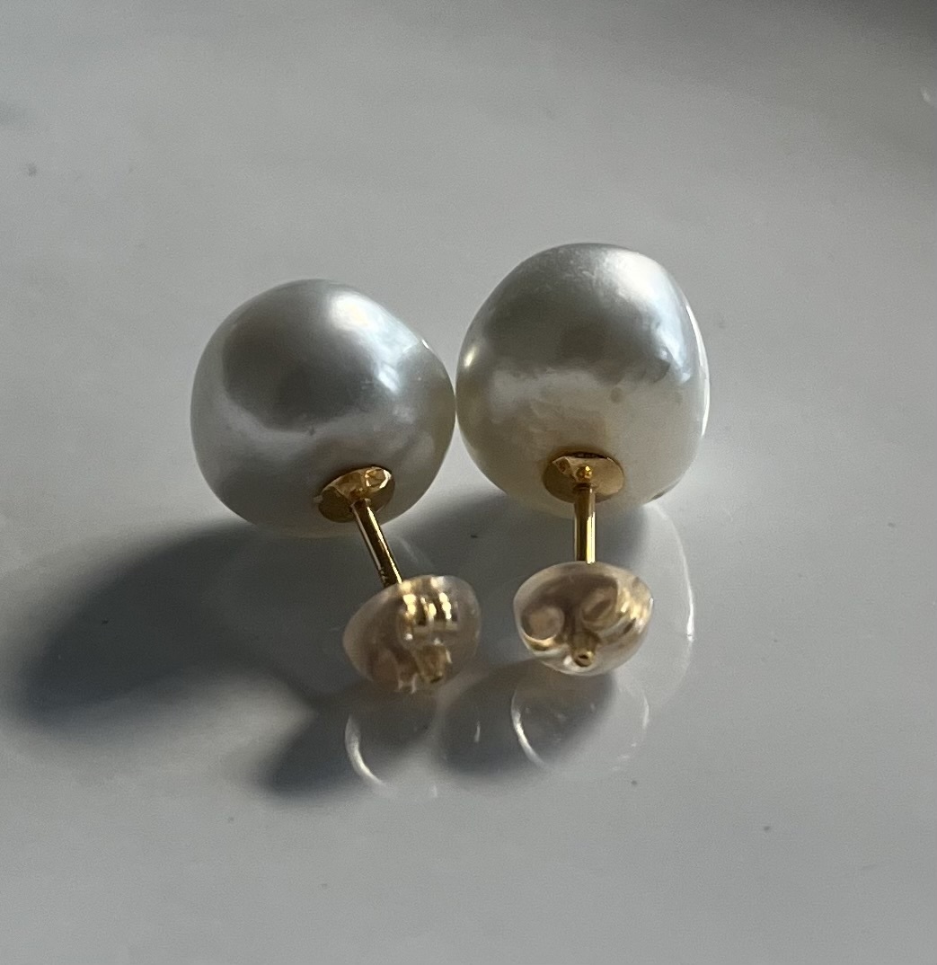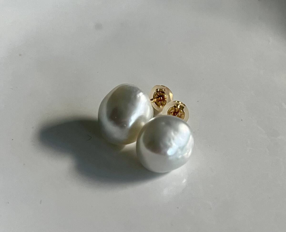 *バロックパールですので、左右で大きさ・形がそれぞれ違います。概ね似たサイズ・雰囲気でペアにされています。