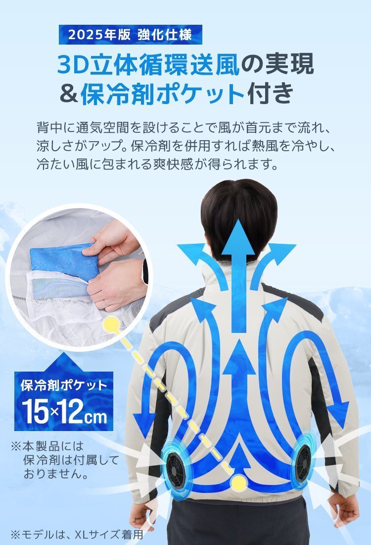 Product name: 【数量限定価格】空調作業服 空調ベスト XLサイズ 空調 ファン付き ウェア 3段階風量調節 強風送風 UVカット 保冷剤ポケット 作業服 冷却