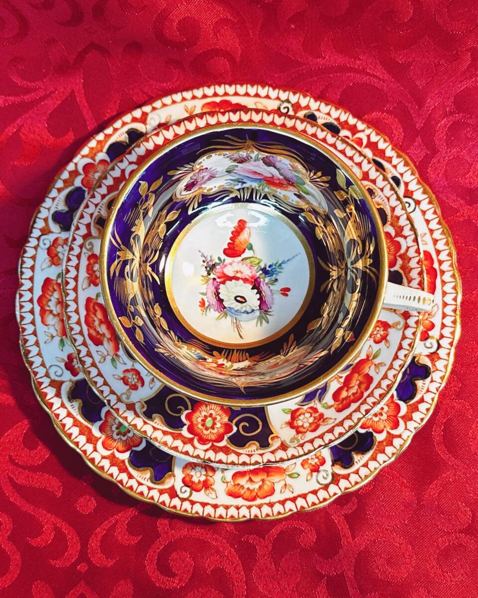 B 可愛いコールポート カップ3点セット、マリアージュ エトラスカン ハンドペイント 花束絵金彩装飾 イギリス アンティーク