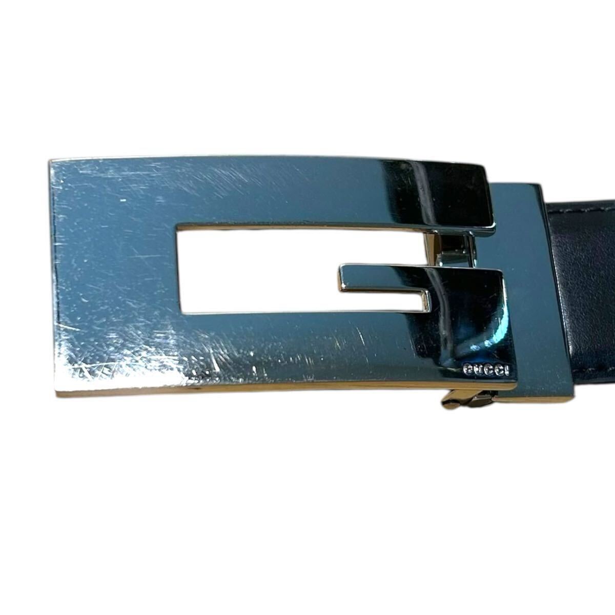 美品 GUCCI グッチ ベルト デカロゴ レザー ブラック 黒 シルバー 銀 通勤 仕事 ビジネス メンズ 幅3.5cm