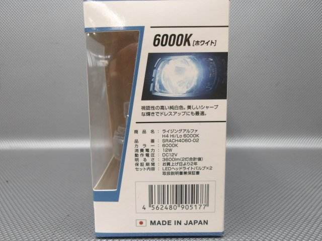 Product name: 中古 スフィアライト RIZINGα ライジングアルファ H4 LEDバルブ ヘッドライト用 Hi/Low切り替え 6000K 3600Lm (棚4529-D217)