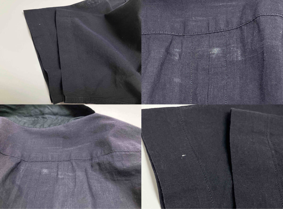 襟周り汚れあり、袖周り汚れあり 後ろ見頃に生地のテカリや、右袖口付近に白い汚れのある箇所があります。(写真6参照)