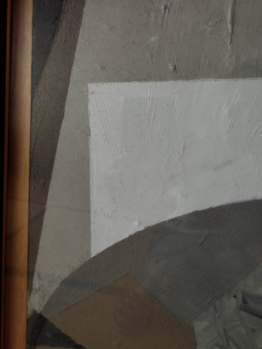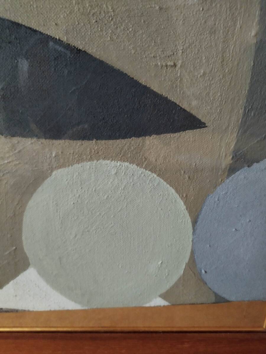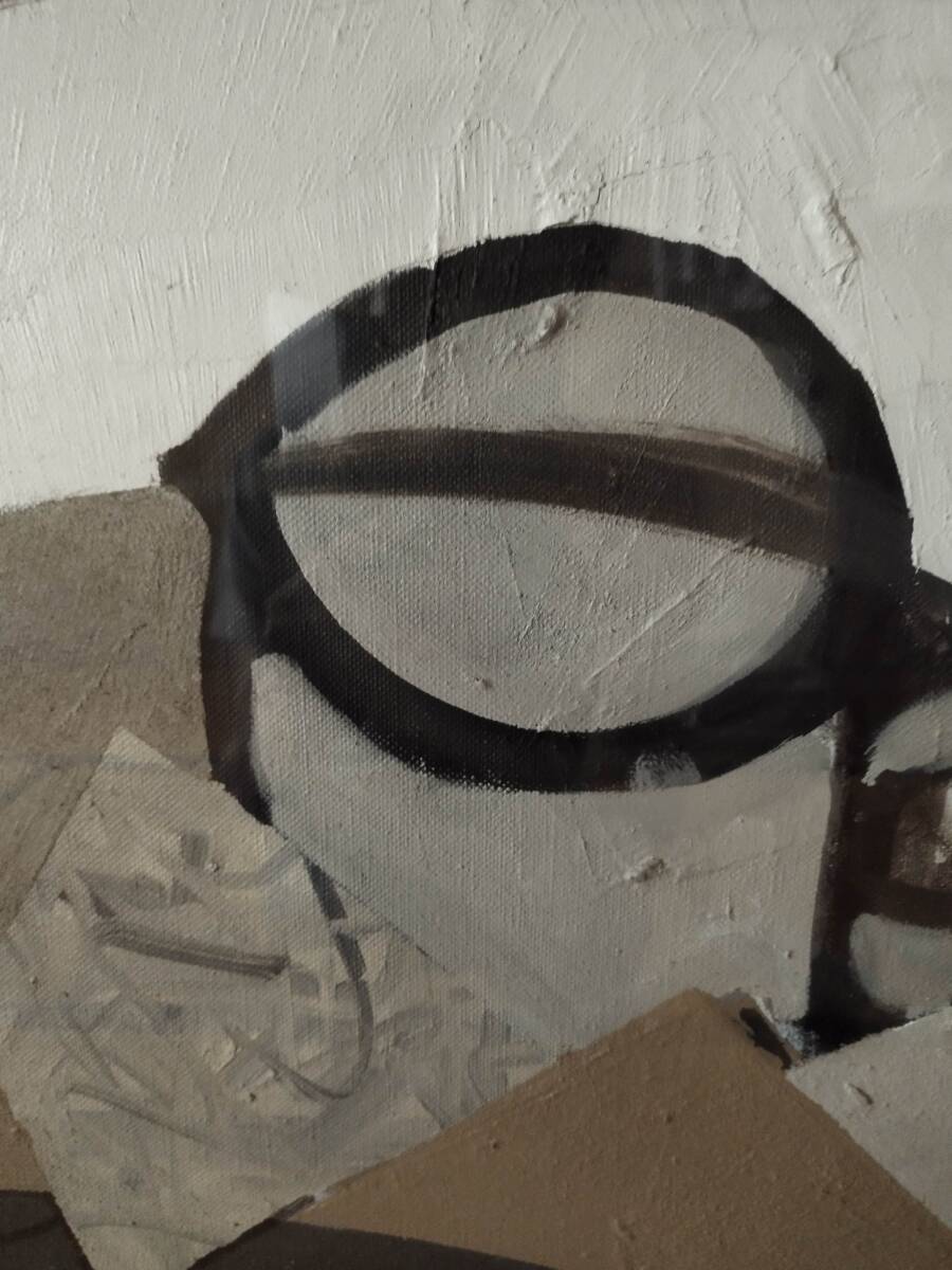 謎めいた、不思議な雰囲気を持った抽象画の作品です。