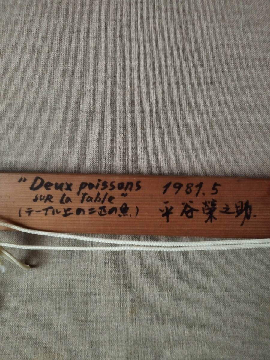 Product name: 平谷 栄之助 「テーブルの上の二匹の魚」 キャンパスに油彩 真作保証