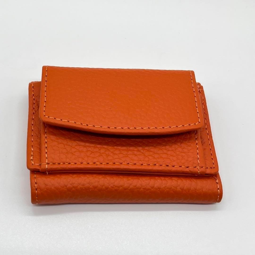 Product name: 本革 ミニ財布 三つ折財布 ウォレット オレンジ コンパクト コインケース 大容量 薄型 スキミング防止 メンズ レディース