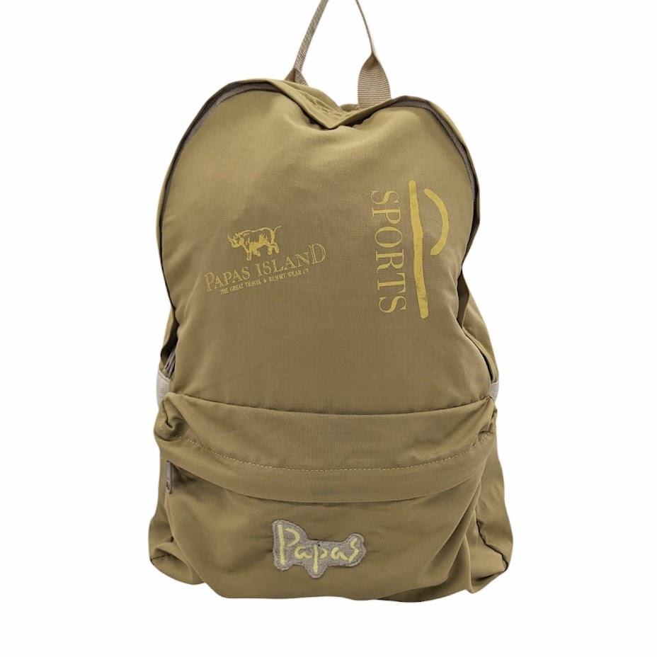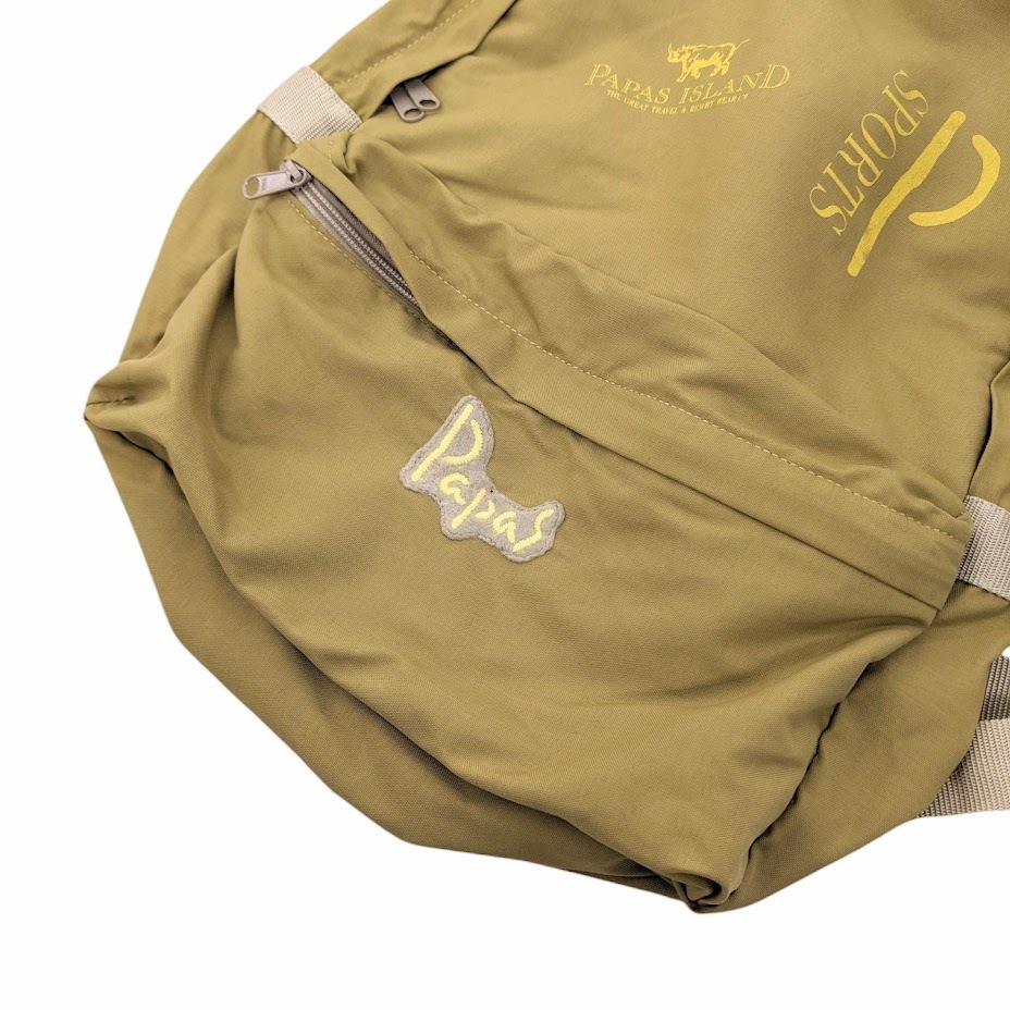 65 Papas ISLAND SPORTS パパス バックパック リュック ナイロン ワッペン プリント D0415EBG81A ベージュ系
