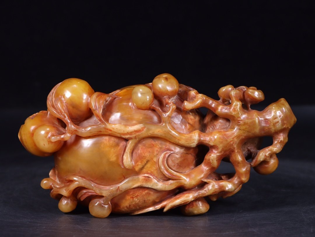 Product name: 【安】清時代 元珠銘 寿山田黄石彫 三多紋水洗置物 共箱 極細工 古擺件 中国古美術 古美味 時代物 224