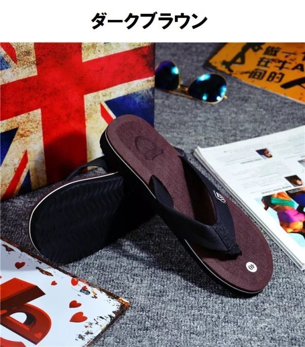 Product name: ブラウン 27.5cm スタイリッシュ ビーチサンダル メンズ サンダル ビーチ サンダル 軽量 トング メンズ レディース 夏 海 滑り止め 木目