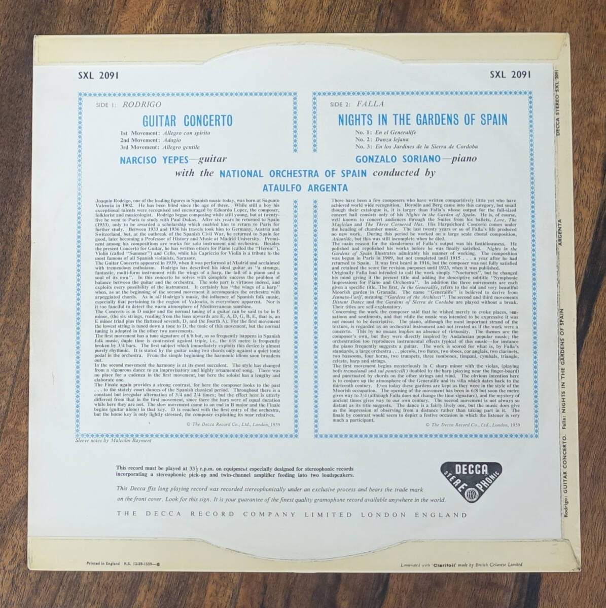 Product name: 極美! 英DECCA SXL 2091 ED1 ファリャ:スペインの庭の夜他 アルヘンタ BB