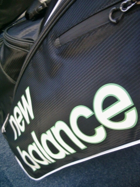 未使用 ニューバランス 男女可 取っ手付き コンパクト&スリム 7、5インチ 合繊素材 黒白緑 スタンドバッグ