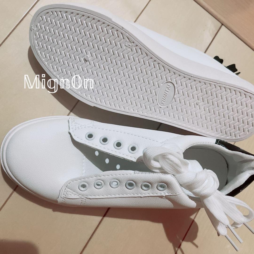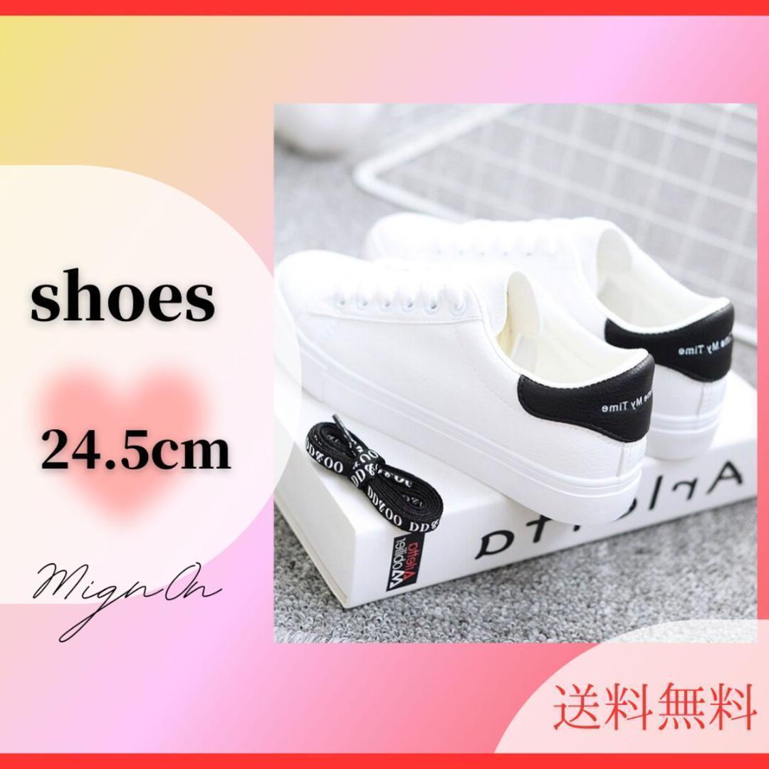 Product name: 大幅値下げ【24.5】フラット ウォーキング ランニング 歩きやすい バイカラー スニーカー 靴 ホワイト 白 黒 スポーツ シンプル 通学 740