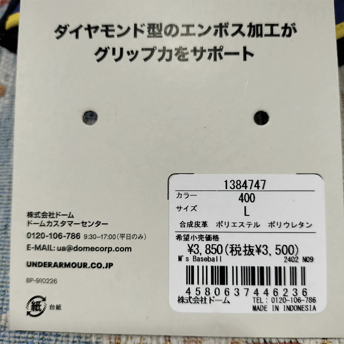 即決価格【消費税 送料すべて込み】現品限り【本日限定値下げ】4450→2600【新品未使用】アンダーアーマー バッティング手袋 青 ブルー L
