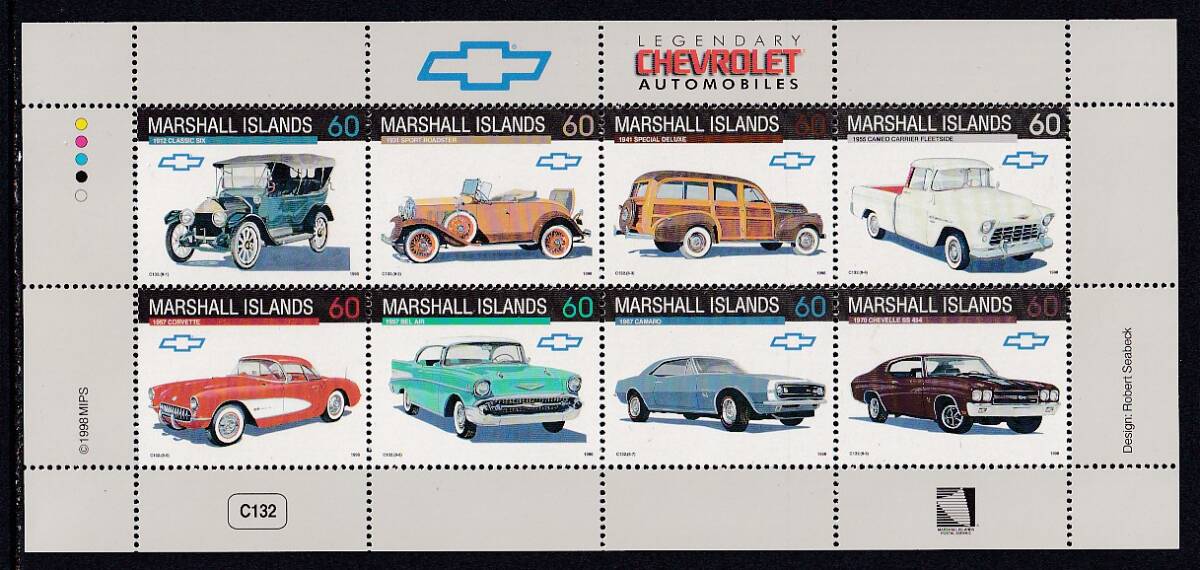 11 マーシャル諸島【未使用】<「1998 SC#667 シャボレー自動車」 組合せ小型シート(8種連刷) >