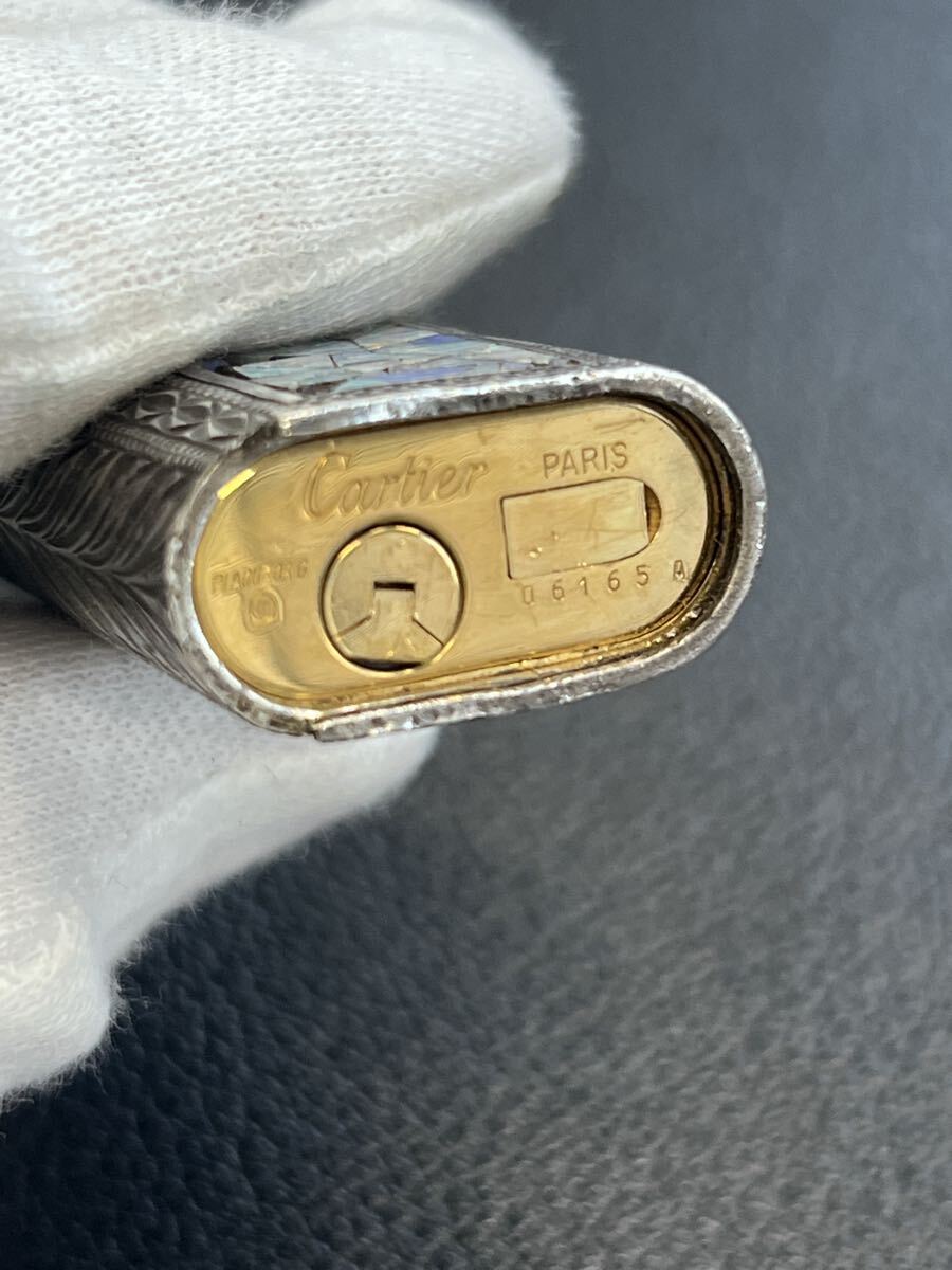 Cartier カルティエ ガスライター アウタージャケット 青蝶貝シルバー