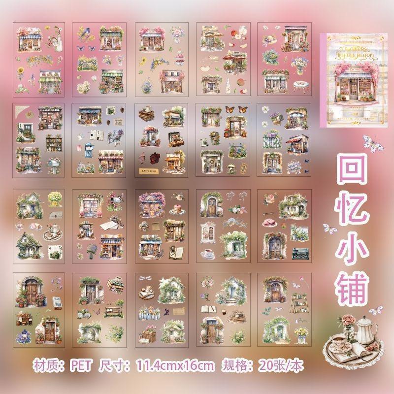 【215】コラージュ素材 ステッカー シールブック レトロ 花 PET 装飾 ジャンクジャーナル スクラップブッキング アンティーク 4種80枚